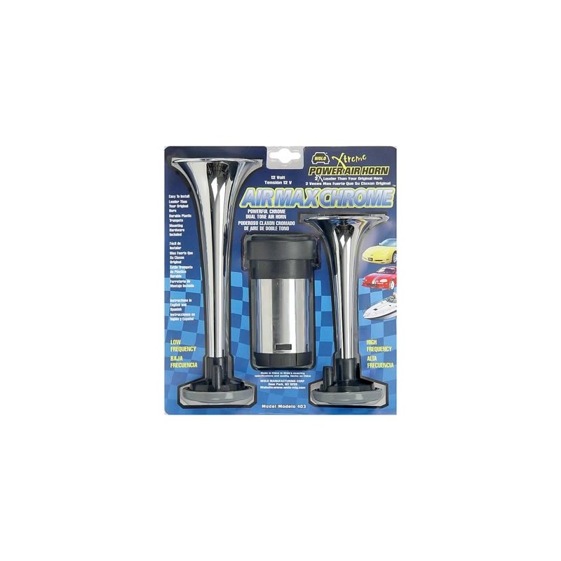 Wolo Air Max air horns are very loud and are perfect for all 12 V vehicles. The two durable black plastic trumpets come with a compact compressor to fit the tightest engine compartments. The Wolo Air Max horns include all mounting hardware and will provide years of dependable sound.